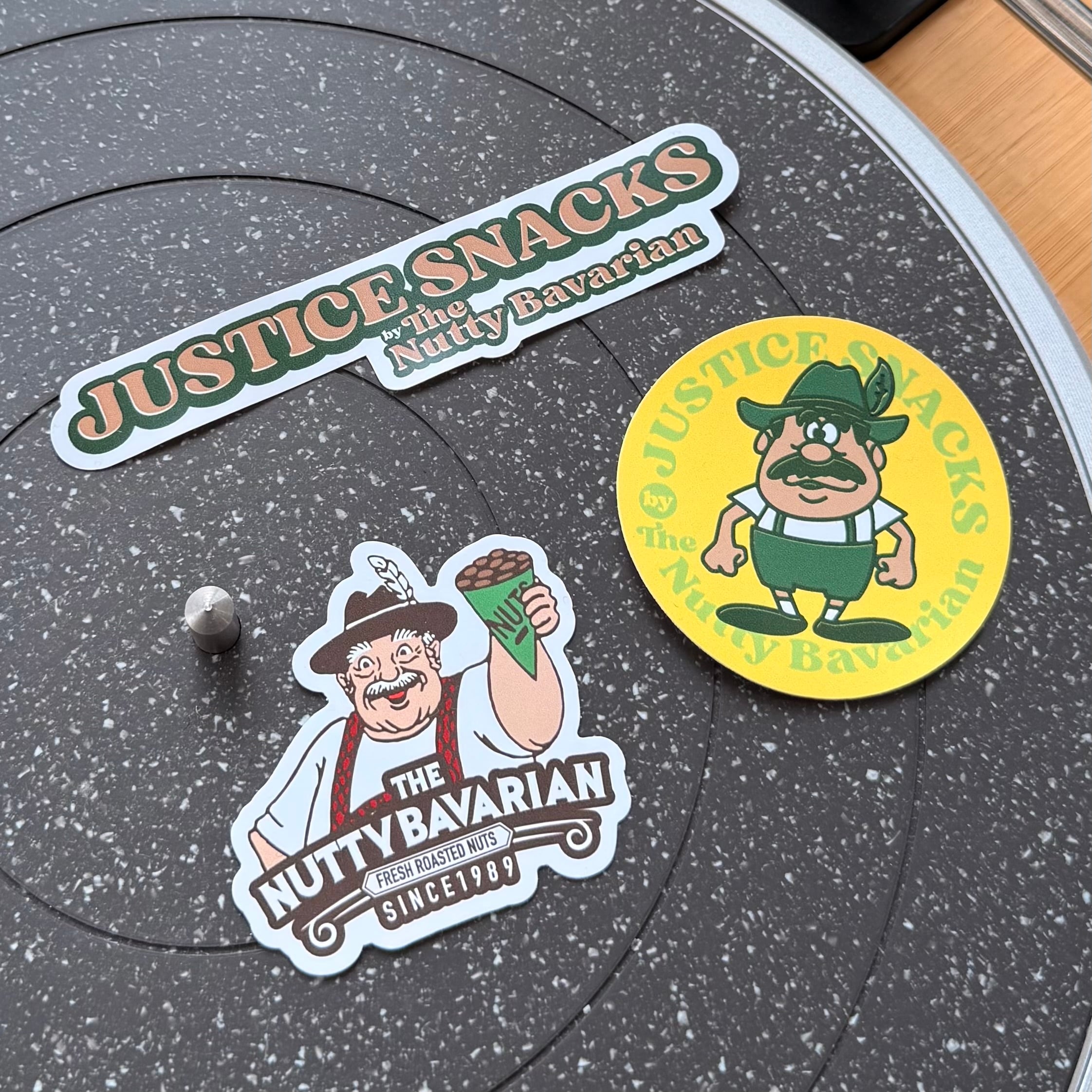 ナッティーババリアンは、ドイツ・バイエルン地方でブルーノ氏が生み出したキャラメルナッツのブランド。 クラシックなブルーノとNEWブルーノを楽しめるステッカーセットです。 スマホやPC、自転車などいろいろな場所に貼って気分UP! 【サイズ】 ブルーノ(クラシック):60×56mm ブルーノ(ラウンド):60×60mm JUSTICE SNACKS ロゴ:119×25mm